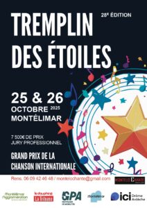 Le Tremplin des Étoiles revient les 25 et 26 octobre 2025 au Palais des Congrès Charles Aznavour à Montélimar pour une nouvelle édition pleine de talents, d’émotions et de découvertes musicales !