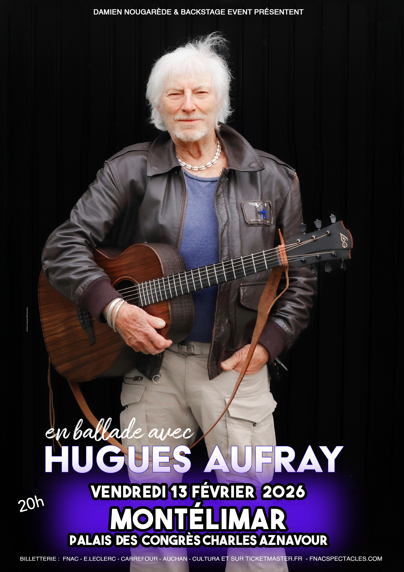 Accompagné de ses musiciens, Hugues Aufray (96 ans) vous invite dans un voyage musical empreint d’émotion et de nostalgie. Au programme : ses plus grands succès — Santiano, Céline, Adieu monsieur le professeur — agrémentés de nouvelles reprises et arrangements, dans une ambiance intime et complice.