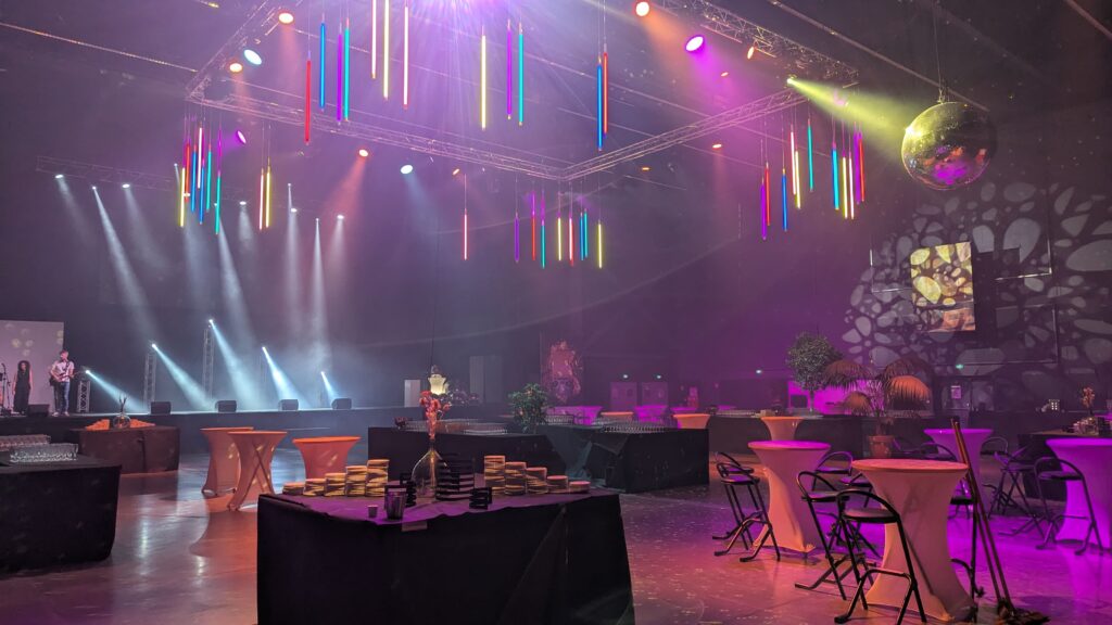 2 salles principales de plus de 1 000m² avec scène dont une avec gradins de 1 500 places (gradin rétractable)
